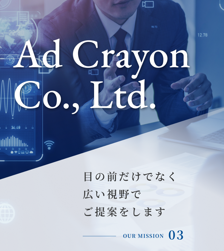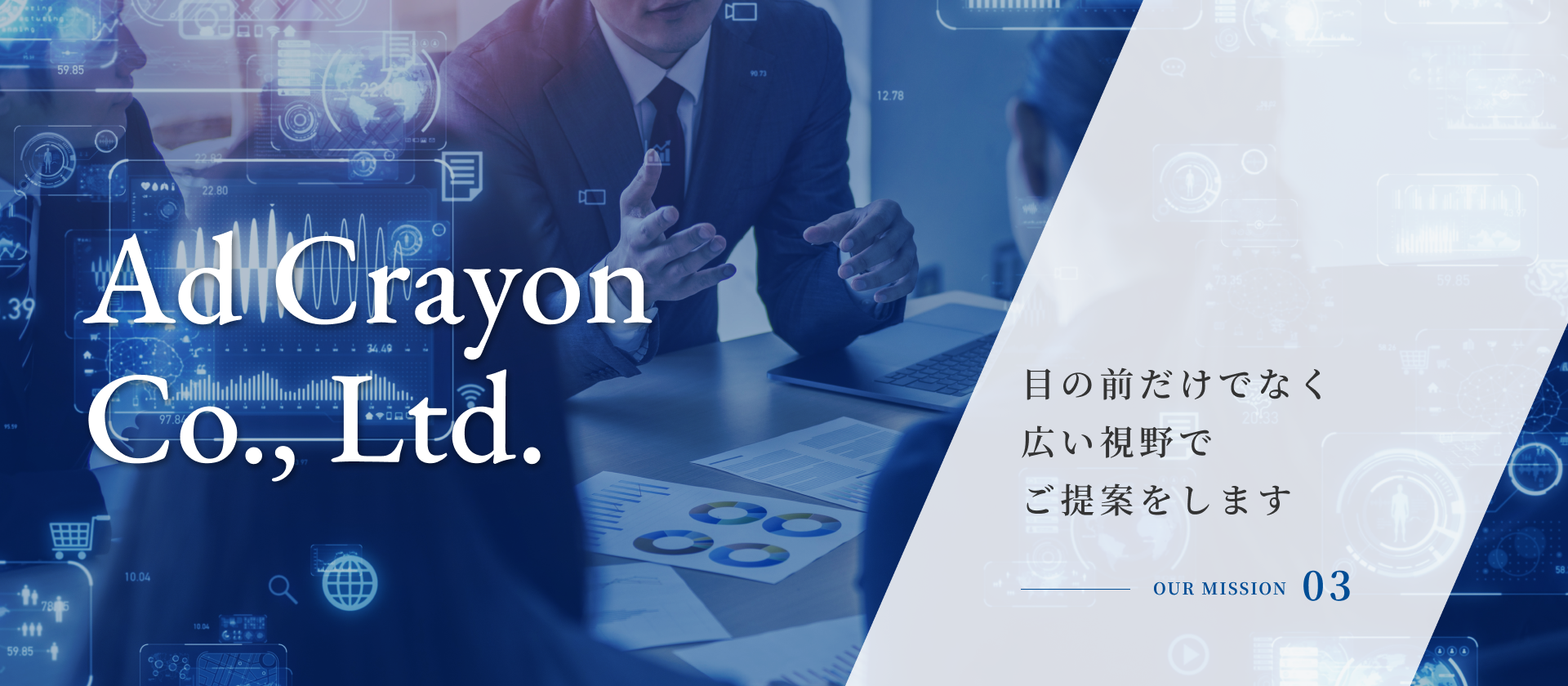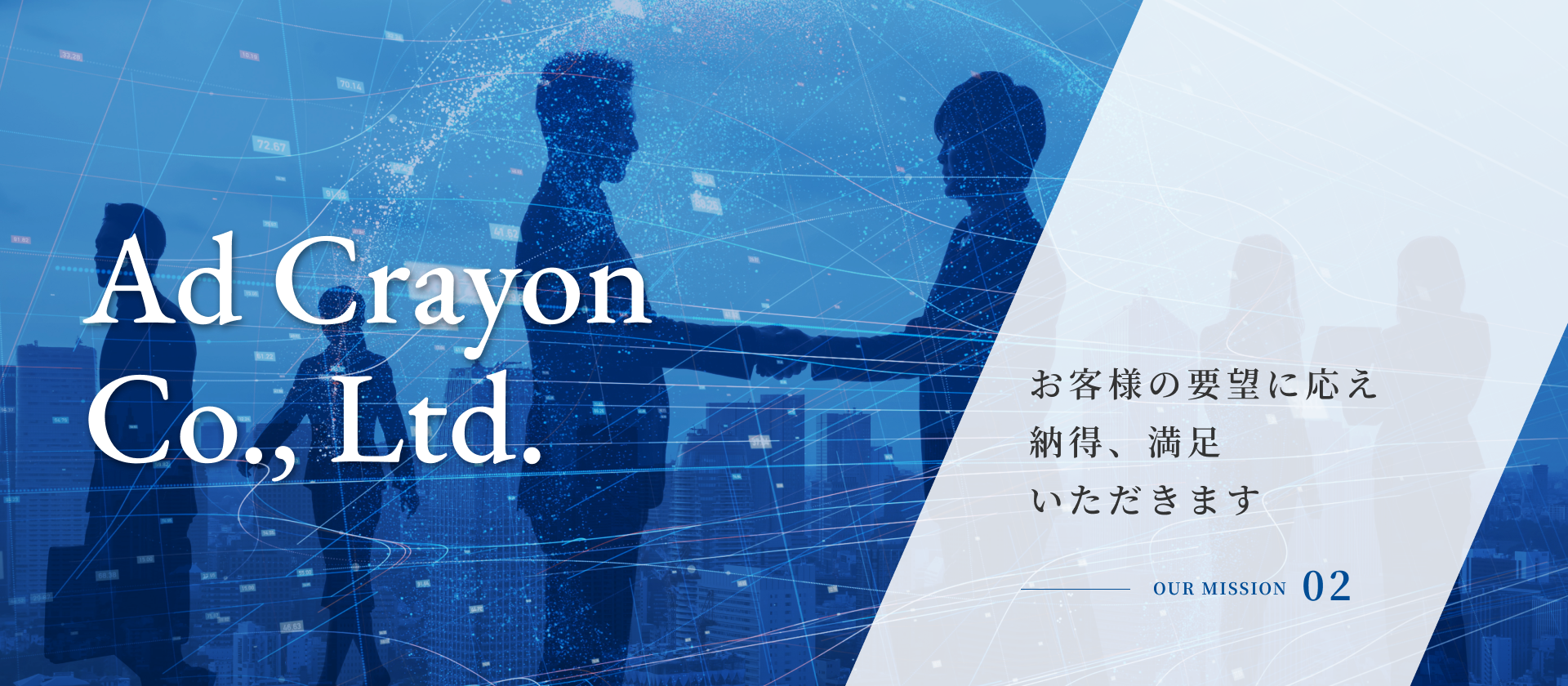 大阪市住之江区の株式会社 アドクレヨンでは、総合広告代理店業をはじめ、通販コンサルタントや事業立案・拡充、デザイン・映像制作のご依頼を承ります。